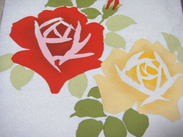赤と黄色のバラ柄の金通し綴れ帯。